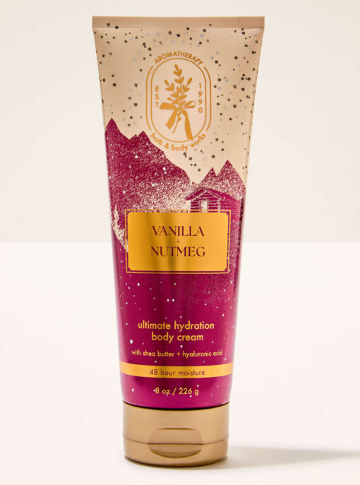 INGREDIENTS: Water (Aqua, Eau), Glycerin, Caprylic/Capric Triglyceride, Isohexadecane, Fragrance (Parfum), Cetyl Alcohol, C12-15 Alkyl Benzoate, Glyceryl Stearate SE, Palmitic Acid, Stearic Acid, Butyrospermum Parkii (Shea) Butter, Dimethicone, Theobroma Cacao (Cocoa) Seed Butter, Phenoxyethanol, Polymethylsilsesquioxane, Acrylates/C10-30 Alkyl Acrylate Crosspolymer, Aminomethyl Propanol, PEG-100 Stearate, Chlorphenesin, Sodium Dehydroacetate, Tocopherol, Disodium EDTA, Ethylhexylglycerin, Polyacrylate-13, Hydrogenated Rapeseed Oil, Sodium Hyaluronate, Aloe Barbadensis Leaf Juice, Polyisobutene, Polysorbate 20, Vanilla Planifolia Fruit Extract, Myristica Fragrans (Nutmeg) Kernel Oil, Tetramethyl Acetyloctahydronaphthalenes, Pinene, Limonene, Citrus Limon Peel Oil, Citrus Aurantium Bergamia Peel Oil, Benzyl Salicylate, Vanillin, Hexamethylindanopyran, Acetyl Cedrene, Coumarin, Linalyl Acetate, Linalool, Cinnamyl Alcohol, Citral, Trimethylcyclopentenyl Methylisopentenol, Rose Ketones, Geranyl Acetate, Eugenol.